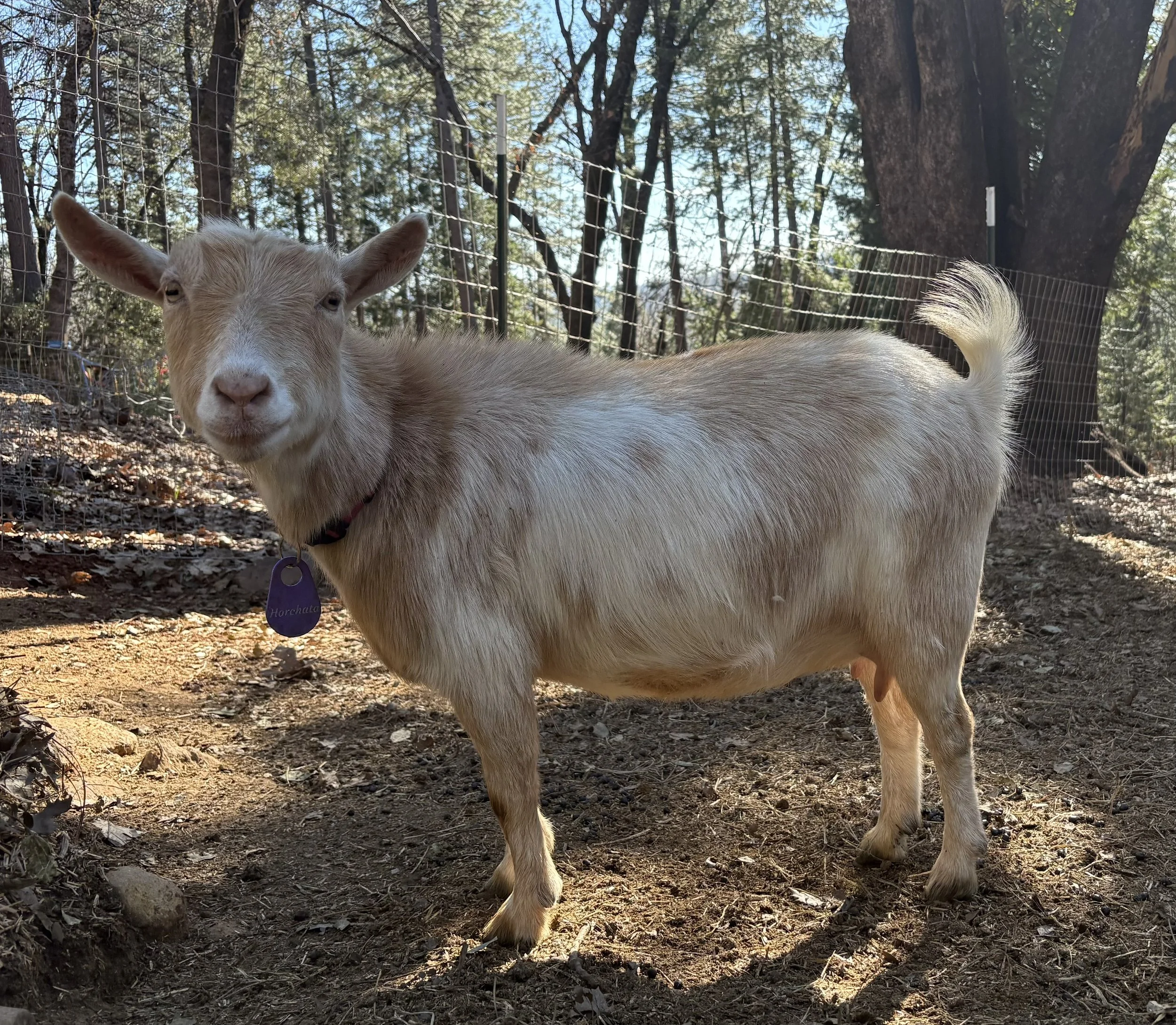 Horchata is a lovely and sweet girl with a beautiful mammary system. She is often found standing back from the feeder allowing the other girls to eat first. I think she would be much happier in a smaller herd and that is the only reason I would part with this girl.