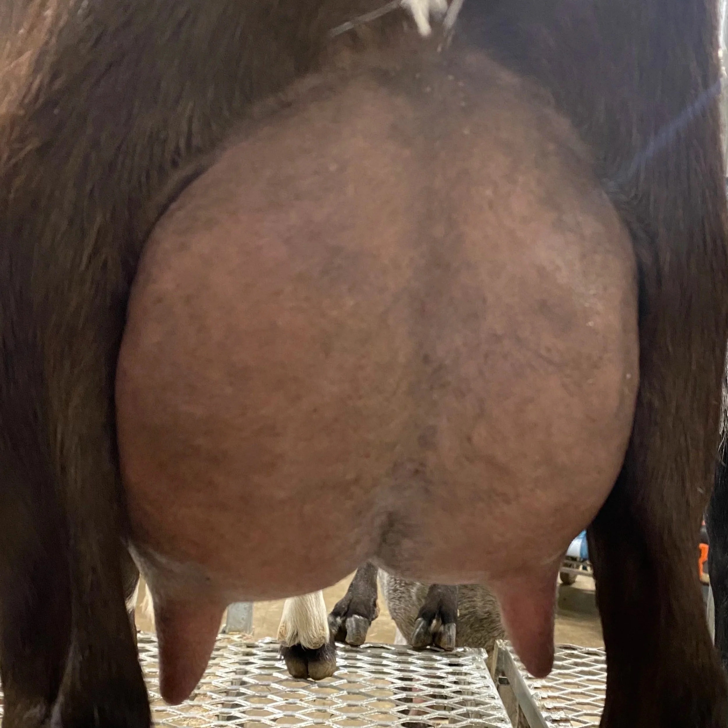 #2: Kidded on 4/9/2024 with Doe and Buck/ 225 days in milk: 447# milk, 28# fat, 19# protein
